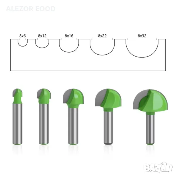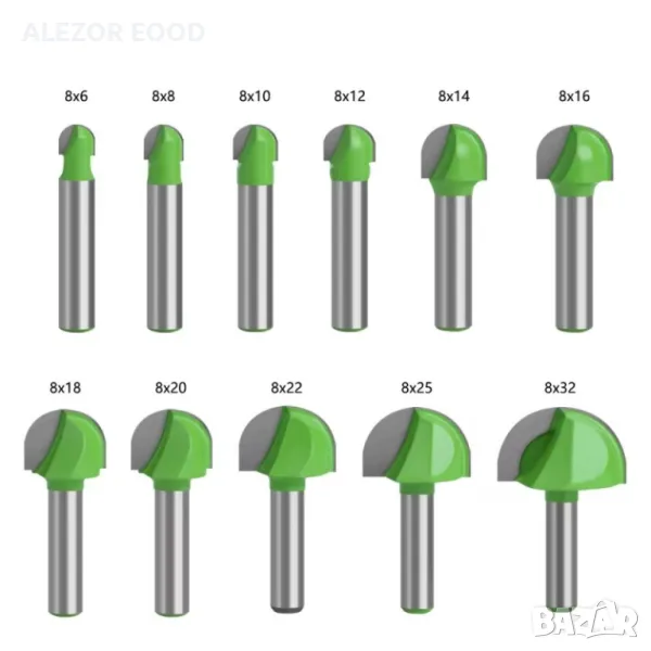 Фрезери за овални канали ball nose с опашка ф8 mm и различни размери на режещите глави. Диаметър на фрезоване от 6 до 32 mm.