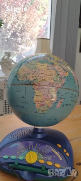 Мултимедиен образователен глобус - с говор на френски език, с мелодии на химни на всички държави, данни за брой население и столици и други информации.
