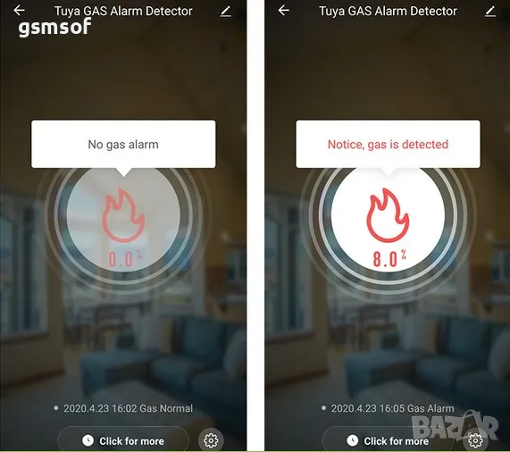 Дистанционен 24 часов мониторинг от телефона. Ще ви уведоми при наличието на изтичане на газ по всяко време, навсякъде през приложението Smartlife или Tuya;