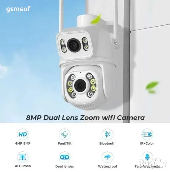 Модел с UltraHD резолюция, 2 камери в един корпус всяка със 3mpx обектив. Горната камера се фиксира стационарно, а долната е подвижна по хоризонтала/вертикала чрез приложението ICSEE / XMeye.