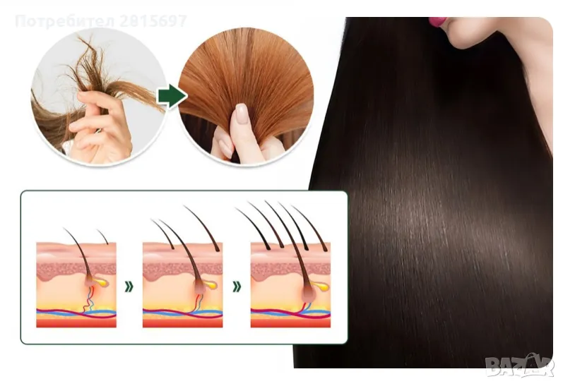 Продуктът възстановява фоликулите и засилва растежа на косъма.