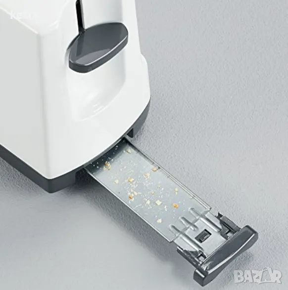 Уреда се почиства лесно благодарение на тавичките за трохи. Наслаждавайте се на винаги хрупкави и вкусни, топли препечени филийки с тостера Severin AT 2232.