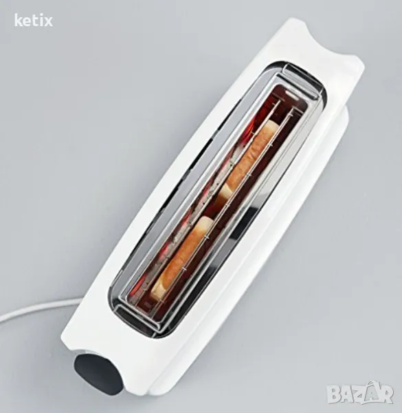 Готовите филийки автоматично изскачат от тостера щом са готови. Разполагате и с бутон за спиране и изваждане на филийките по всяко време.