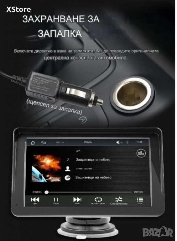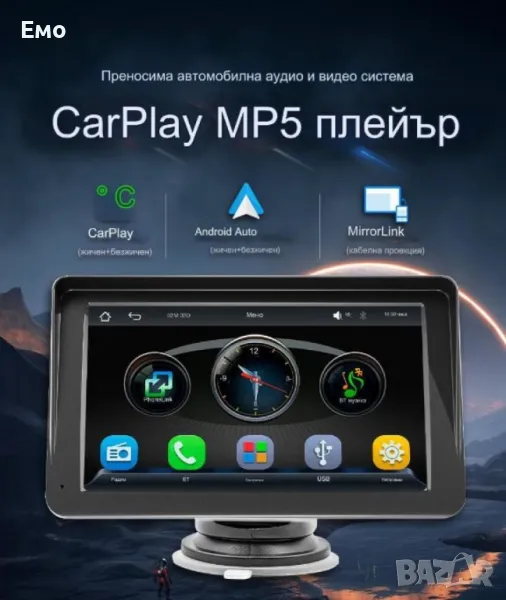 Монитор за кола, 7 инча екран, 1024x600 резолюция, MP5, Carplay, Android Auto, GPS, Waze, Bluetooth
