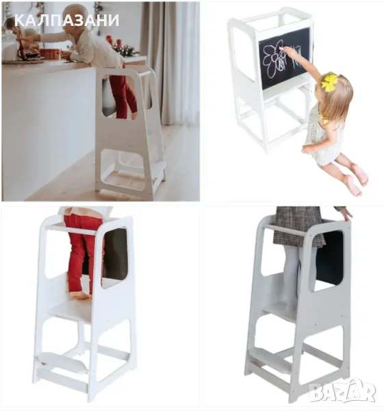 Монтесори Кула, Образователно Столче с Черна Дъска и Регулируема Височина, Бяла TF13071