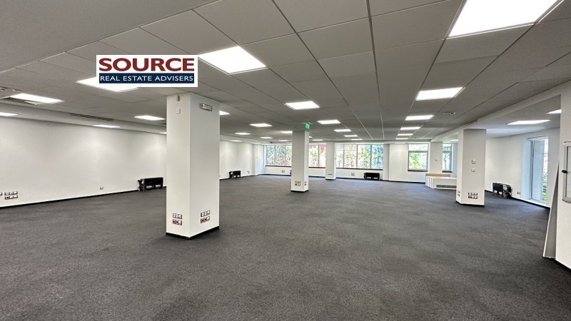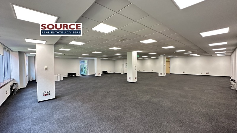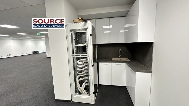 2. Разпределение: 1 голямо Open space помещение, 1 отделно работно помещение, оборудвана кухня, 2 wc. Офисът може да бъде изцяло с Open space разпределение или допълнително преграден според изискванията на Наемателя.