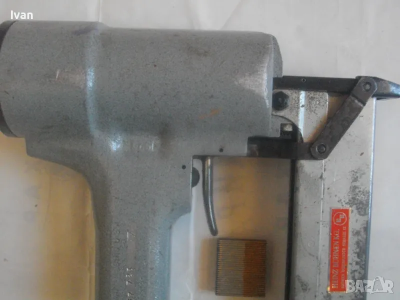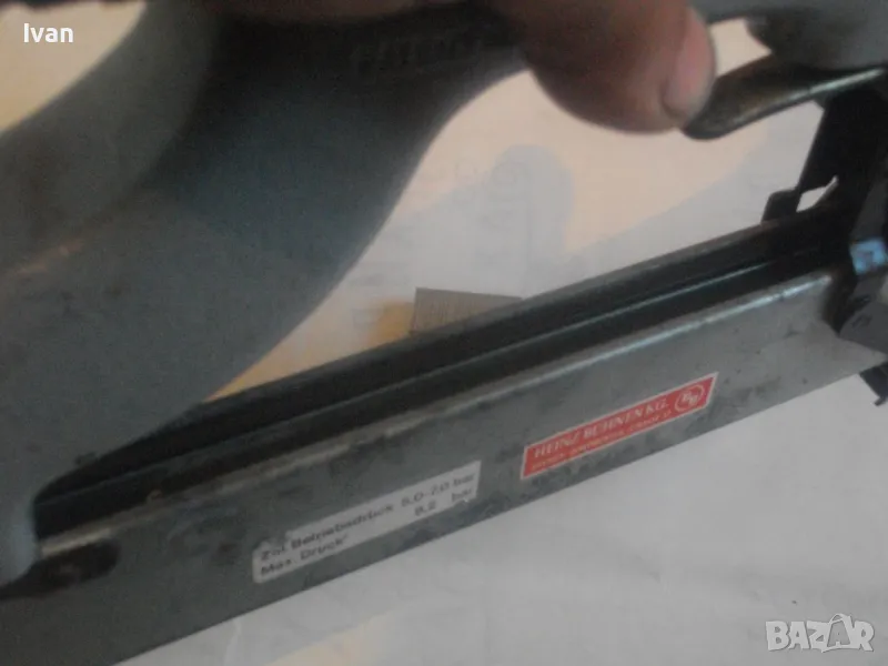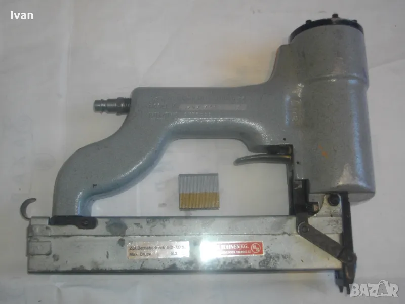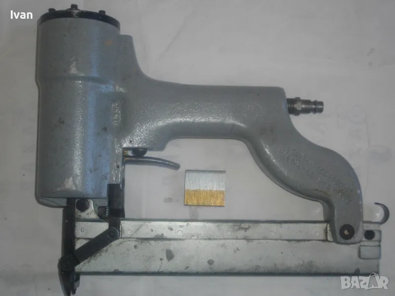 ОПИСАНИЕ на американски САЩ пневматичен такер СЕНКО - цена 299 лв. Марка и модел SENCO Model K - Made in USA - 5,0 - 7,0 bar Max Druck - 8.2 bar. Такера е професионален индустриален промишлен, за скоби размер до 30 мм дължина. Машината е почти нова, като нова, още е с фабричните си магазинни стикери. В отлично работно и механично състояние. Алумин корпус със стомана пълнител голям. Глава от закалена инструментал стомана. Оригинален щуцер бърза връзка за скачване с компресор. Зареден половин блистер скоби 30 мм в пълнителя за проба и тест. Размери на машината - 240 х 300 х 70 мм. Тегло - 2,5 кг. .