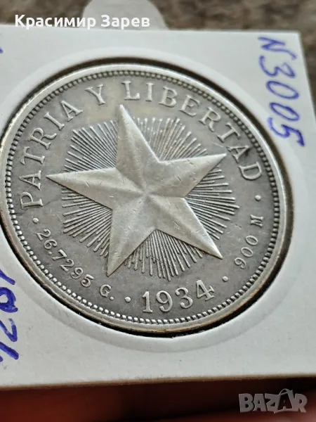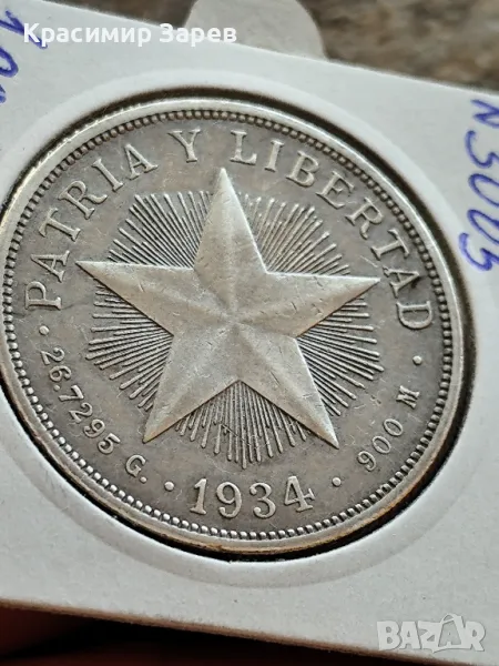 1 песо 1934 год,Куба, сребро, тегло 26.72 гр, проба 900/1000 → Обява 47718239