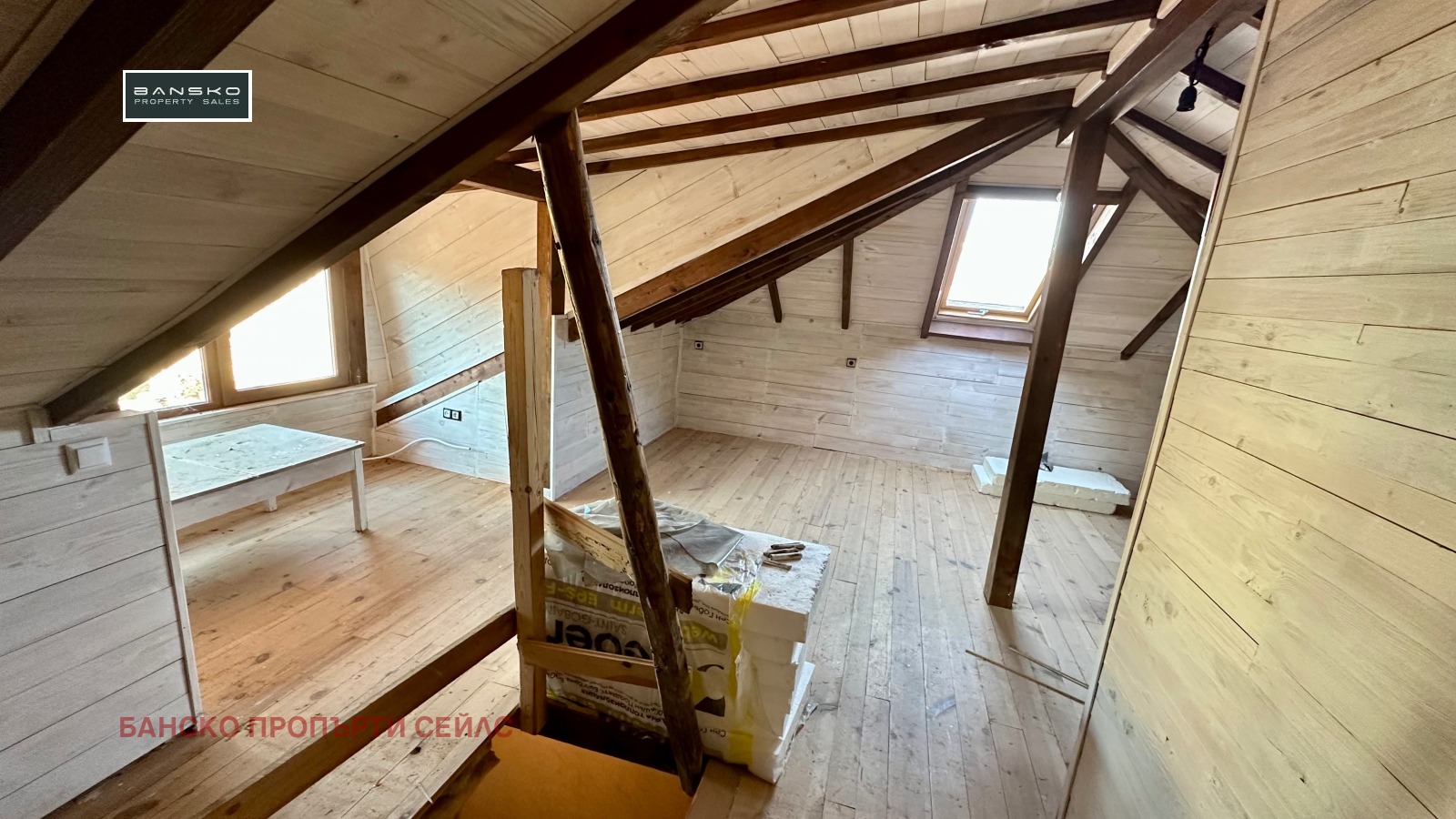 🔴Дограмата на всички стаи е ПВЦ, вторият етаж е с външни ролетни щори, в таванското студио е с покривни прозорци - Велукс.