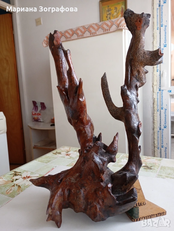 Ако проявите желание, купувате една скулптура, а в действителност - притежавате две чудесни пластики от дърво, в зависимост от ракурса на наблюдение.