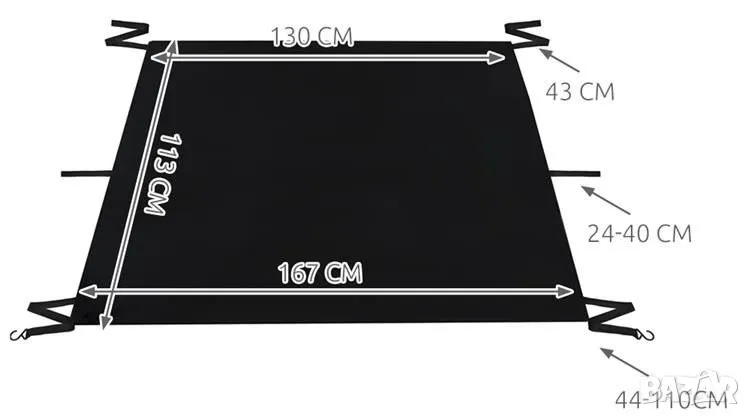 Бързо и стабилно монтиране – Закрепва се лесно с помощта на вратите и се закрепва за огледалата и гумите, осигурявайки стабилност дори при силен вятър.