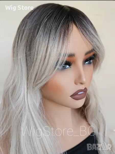 Пепеляво руса перука на вълни с бретон → Обява 47721441