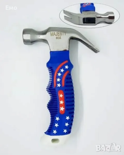 Материалът, използван за изработката на чука, е въглеродна стомана, която е известна със своята здравина и издръжливост. Това гарантира, че чукът ще издържи на значителни натоварвания и ще има дълъг експлоатационен живот. Плоският стил на главата е идеален за разнообразни задачи, включително забиване на пирони и леко чукване, докато нокътят от задната страна е незаменим при изваждането на пирони или други закрепващи елементи. Синята гумена дръжка осигурява удобен и сигурен захват, което е особено важно при продължителна работа. Ергономичната форма на дръжката намалява умората и позволява по-прецизно контролиране на инструмента.