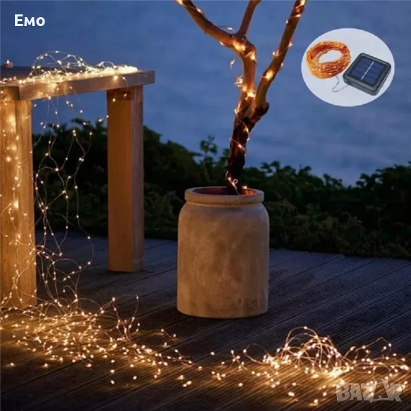 Гирлянд с лед лампички и соларен панел, 10 метра → Обява 47721619