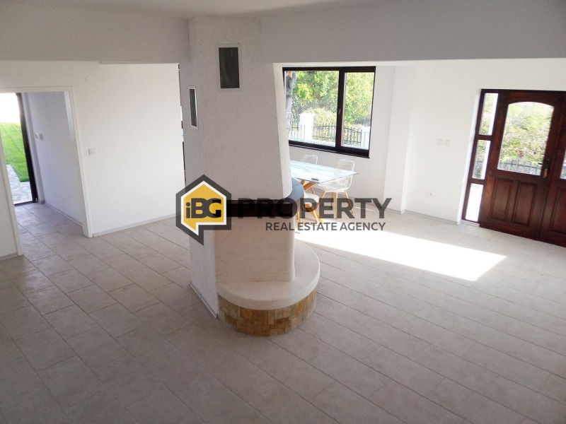1-ви етаж - входно антре, два килера, тоалетна, голяма и много слънчева всекидневна с изнесена кухненска зона (с монтирана кухня), красива камина в центъра на всекидневаната, веранда пред всекидневната