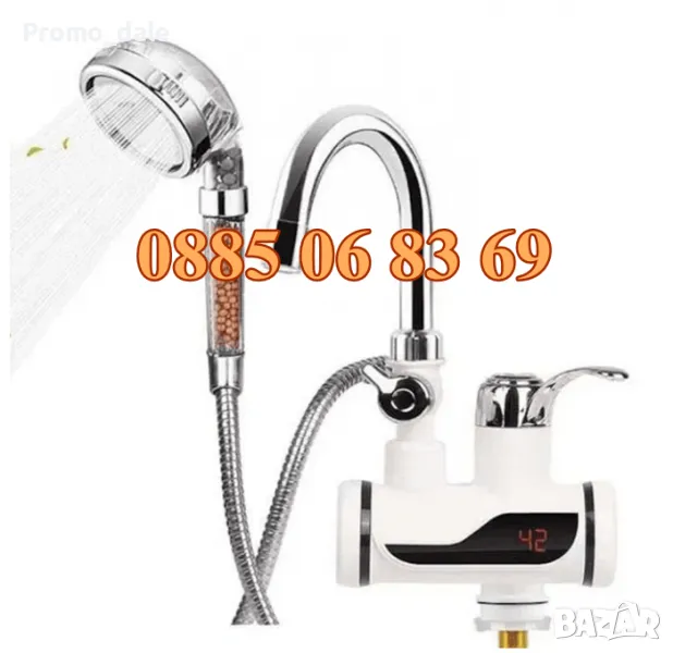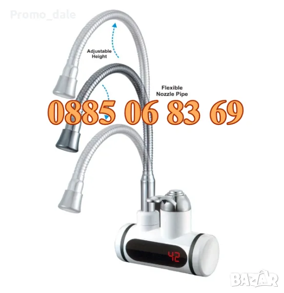 Този проточен бойлер на пръв поглед изглежда като обикновен кухненски смесител за топла и студена вода, но вграденият в него мощен нагревател ще ви осигурява сигурно и надеждно топла вода, без да се налага да чакате за загряването и, както при класическите бойлери.Чудесно пасва на всяка кухня или баня, може да се използва като смесителна батерия. Намира широко приложение за всякакви ежедневни дейности в кухнята или банята.