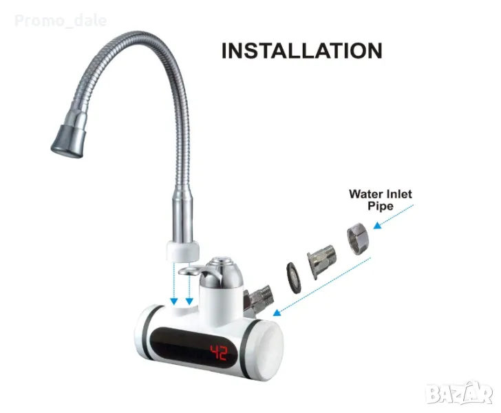 Този проточен бойлер на пръв поглед изглежда като обикновен кухненски смесител за топла и студена вода, но вграденият в него мощен нагревател ще ви осигурява сигурно и надеждно топла вода, без да се налага да чакате за загряването и, както при класическите бойлери.Чудесно пасва на всяка кухня или баня, може да се използва като смесителна батерия. Намира широко приложение за всякакви ежедневни дейности в кухнята или банята.