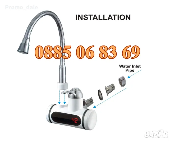 Този проточен бойлер на пръв поглед изглежда като обикновен кухненски смесител за топла и студена вода, но вграденият в него мощен нагревател ще ви осигурява сигурно и надеждно топла вода, без да се налага да чакате за загряването и, както при класическите бойлери.Чудесно пасва на всяка кухня или баня, може да се използва като смесителна батерия. Намира широко приложение за всякакви ежедневни дейности в кухнята или банята.