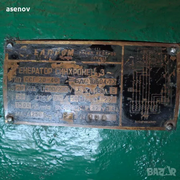 продавам генератор -20kwA - 16 kw, български, малко работил, тегло 230 кг