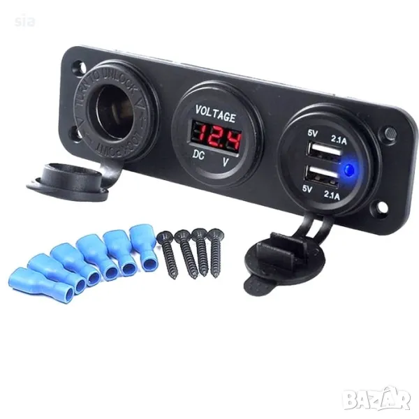 Монтажен панел с Волтметър, 2 USB порта, гнездо за запалка