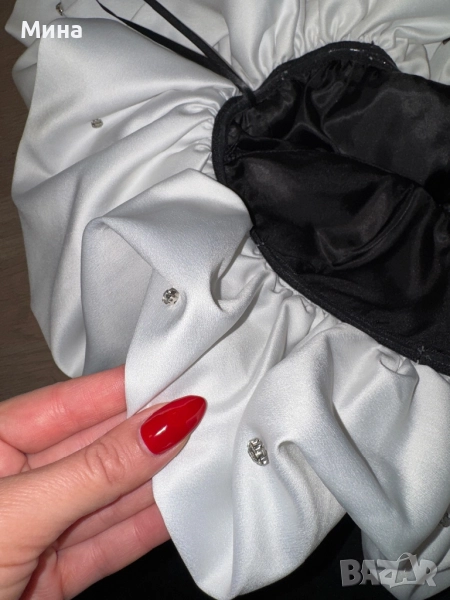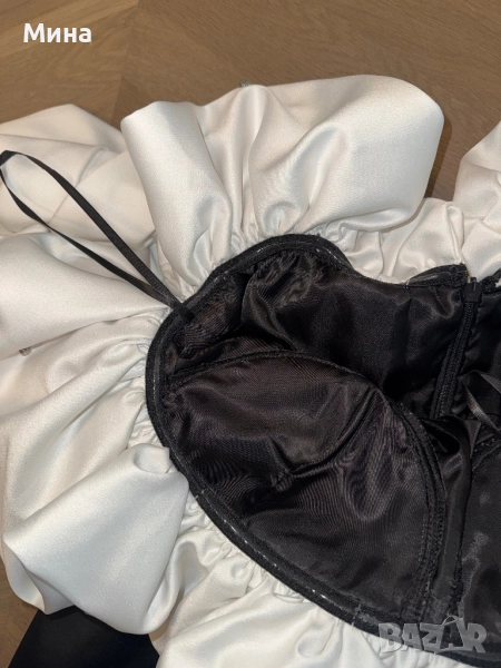 Няма как да останете незабелязана с този модел. Може да се носи без сутиен и има силиконова лента над бюста. Не се мачка. Обличана е само веднъж за повод и няма никакви забележки.