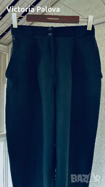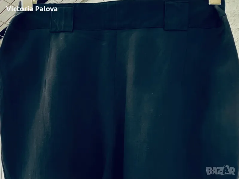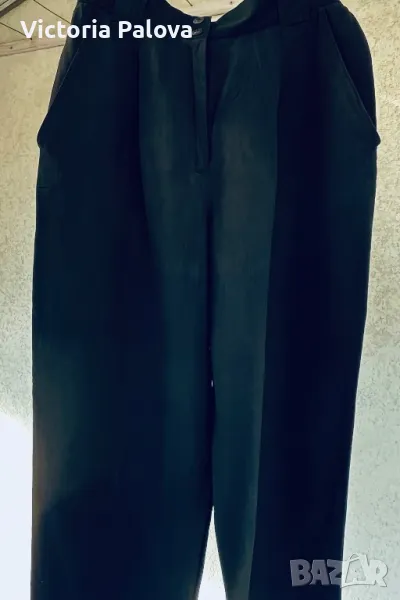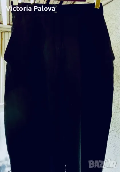 45% лен и 55% вискоза - панталон с много широк крачол горе - 39см, долу е 23см. Цялата дължина е 112см, отвътре крачолът е 78см. Висока талия (42см), пада тежко.