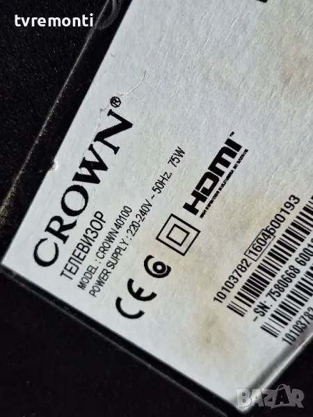 MAIN BOARD 17MB82S от Crown 40100 40inc DISPLAY VES400UNDS-2D-N11 борда е гарантирано работещ Демонтиран от телевизор Crown модел 40100 със счупен дисплей VES400UNDS-2D-N11 тествана от нашия техник Ремонт на всички марки съвременни телевизори