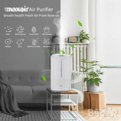 С помощта на ултразвукова технология за овлажняване, овлажнителят разпръсква фини водни частици във въздуха, увеличавайки влажността и намалявайки количеството прах във въздуха. 360-градусовият въртящ се накрайник гарантира равномерно разпределение на овлажнения въздух в стаята.