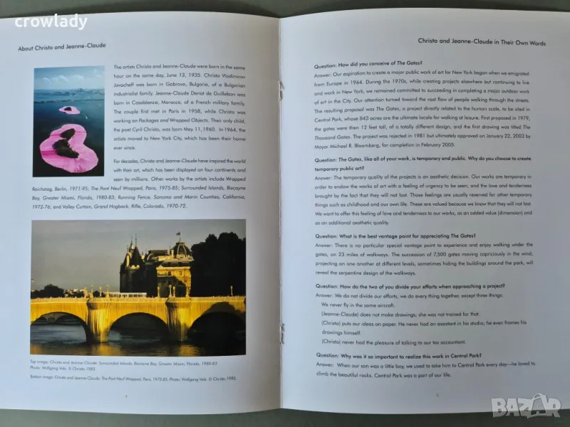 Кристо и Жан-Клод не искат пари за своите проекти, не пишат концепции и молби до различни фондации.
