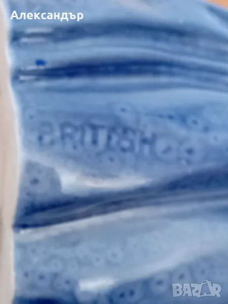 Глазиран английски порцелан от 50 те години. Много красива статуетка. Маркировка на роклята " BRITISH". Единствена забележка е отчупено малко парченце от върха на обувката. Около 1.5 мм. Почти не личи. Размери на снимките.