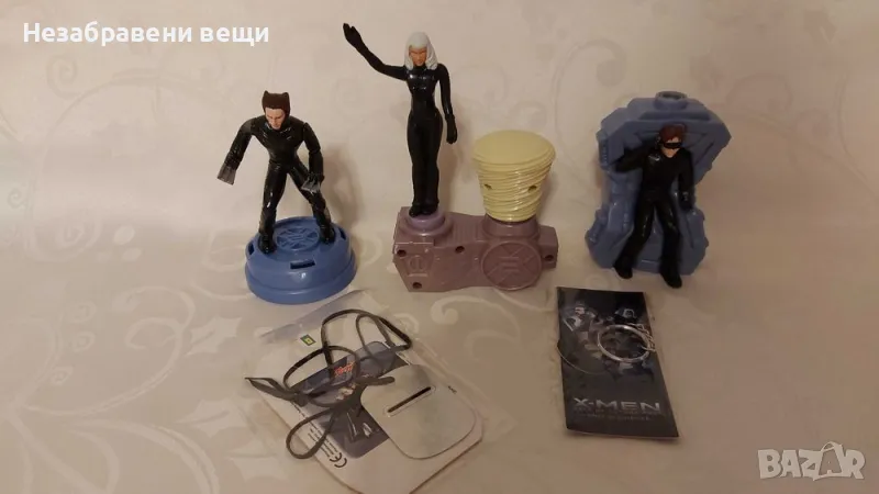 Колекция X-Men 2 на Marvel и KFC от 2003 г., състои се от три играчки на трима герои: Storm (Буря), Cyclops (Циклоп) и Wolverine (Върколака). Състоянието им е като ново, всички са механични и работещи. С рязко натискане на фигурката на Буря, й се задвижва и изхвърча жълтата част тип вихър. С натискане на бутон, на Циклопа му светят очите (очилата), ще го видите на снимка, за целта са му поставени 2 чисто нови плоски батерии. С натискане на две копчета, на Върколака му се движат бързо ръцете с огромните нокти, поединично или заедно.