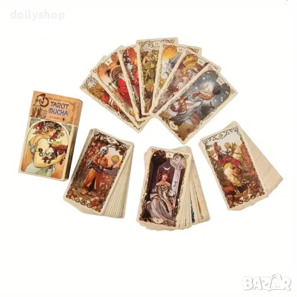 78 бр. Карти Таро Mucha Tarot, Игрални карти за гадаене Oracle English Visions Edition → Обява 47726976