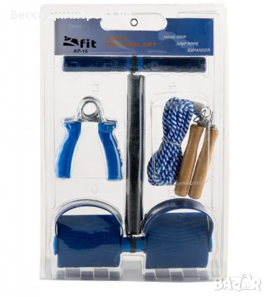 Тренировъчен комплект KFIT - KF-16 е идеален за цялостна тренировка у дома или навън. Комплектът включва разнообразие от фитнес аксесоари за тренировки на различни мускулни групи. Подходящ е за потребители на всички нива, от начинаещи до напреднали.