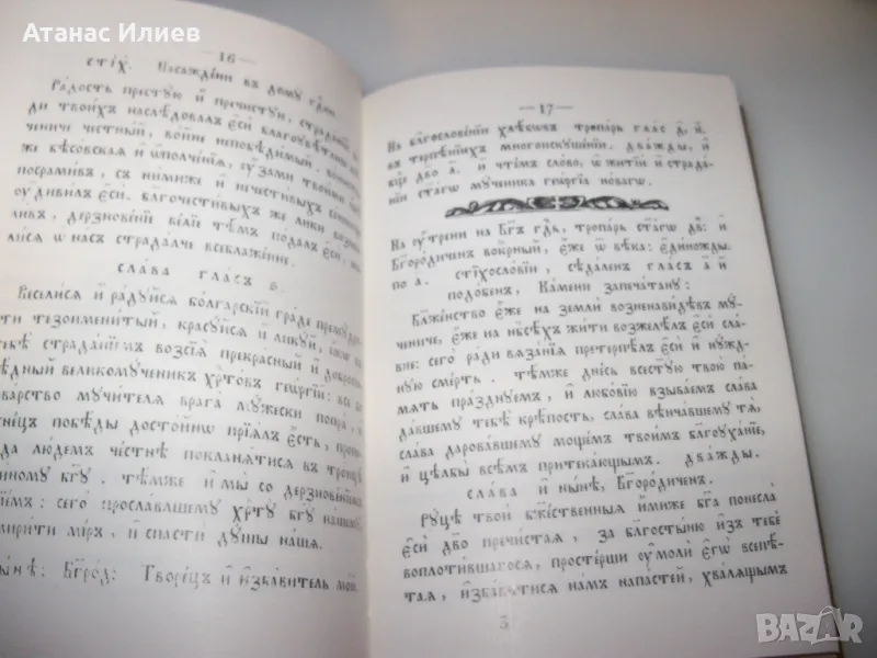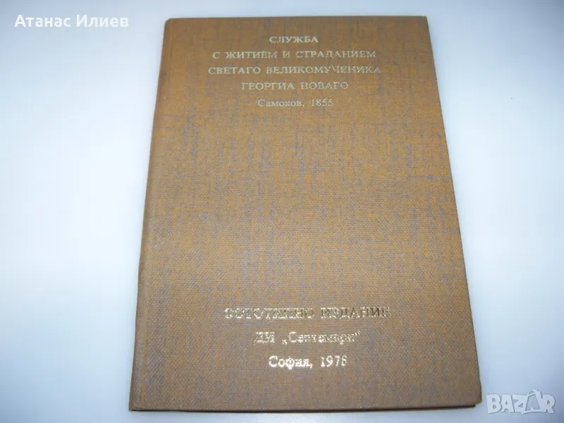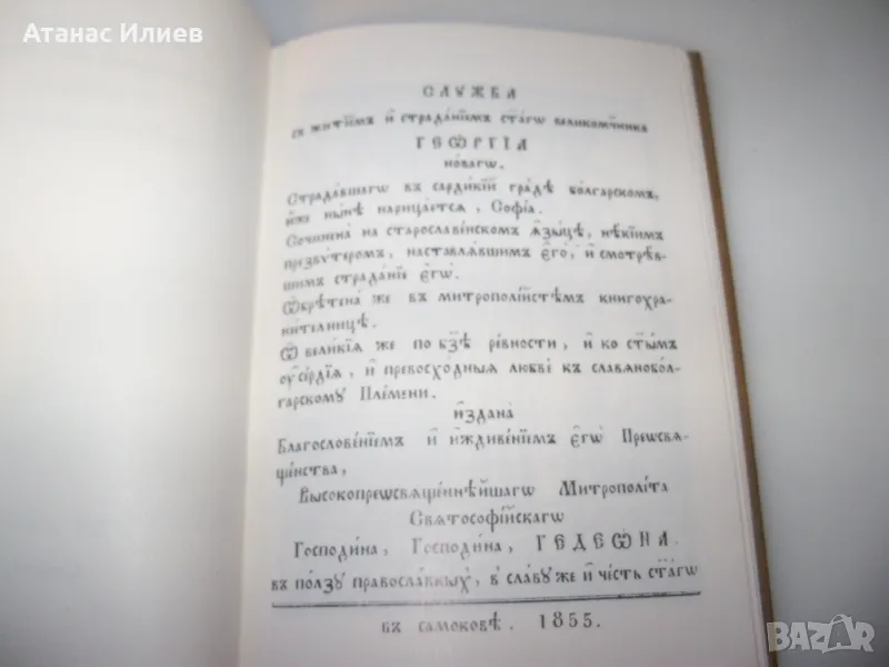 "Служба с житием и страданием светаго великомученика Георгиа Новаго", Самоков 1885. Книгата е луксозно фототипно издание от 1978г. Твърди корици, 74 стр. в отлично състояние.