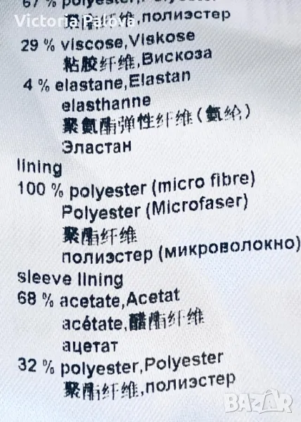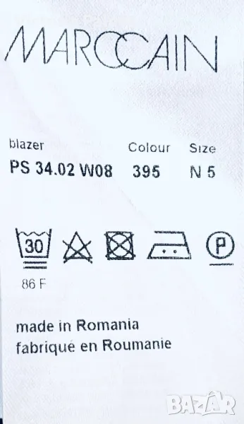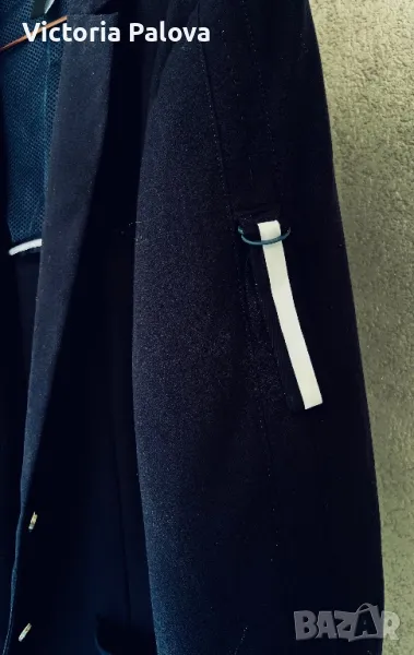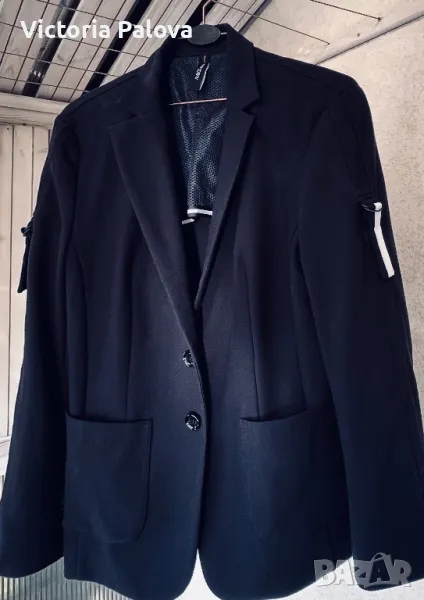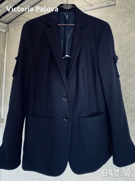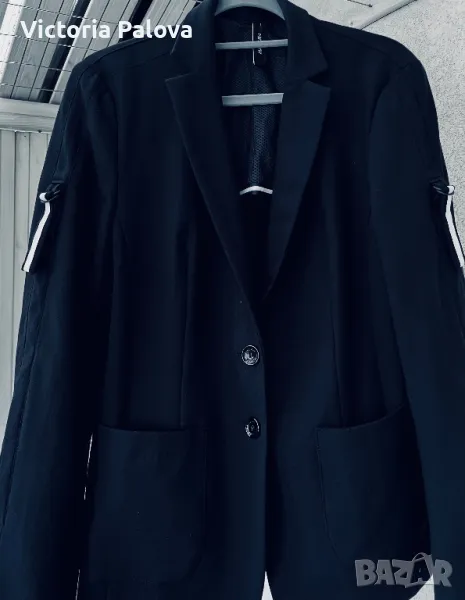 Луксов скъп бранд, създаващ уникални качествени дрехи. Сакото е спортно, от еластичен трикотаж (машинно пране), много стилно и красиво, с брандирани копчета. Рамо - 45см, ГО - 52см, дължина - 71-72см, ръкав - 62см. По ръкави има цепки 8 см евентуално за подгъване.