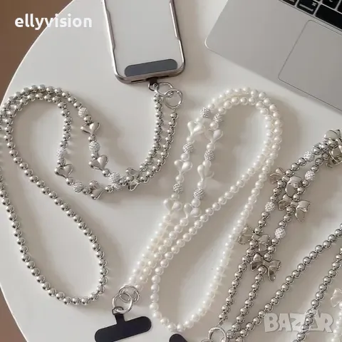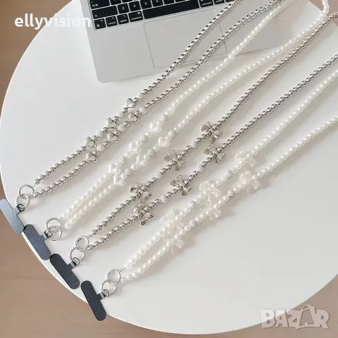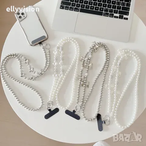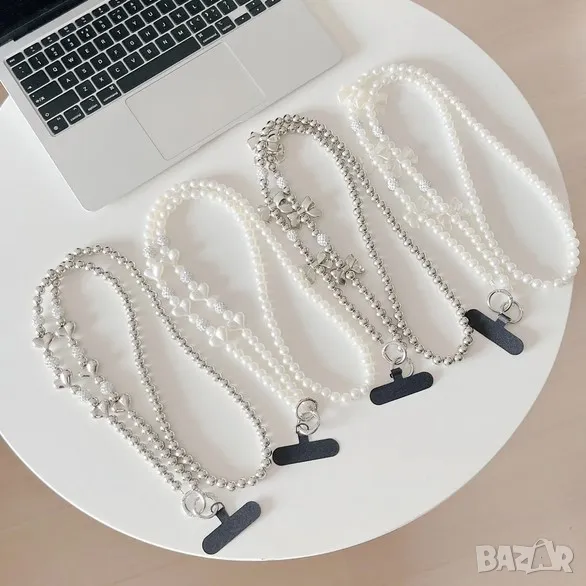 Стилна перлена каишка бижу за телефон.Дължина 120 см