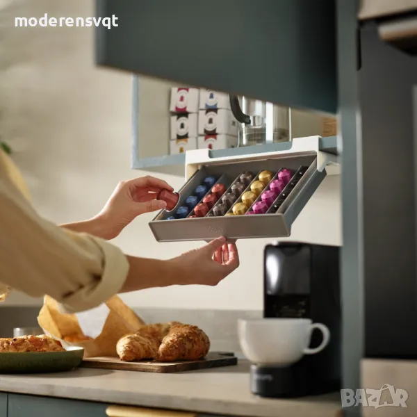 Направете сутринта си по-лесна с чекмеджето за кафе на капсули CupboardStore™. Използвайте неизползваното пространство под всеки рафт с лесен монтаж без инструменти. Чекмеджето побира 30
