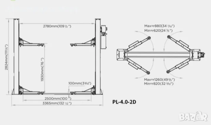 Подемник двуколонен 4,0t електрохидравличен, снимка 1 - Други инструменти - 47729772 Подемник двуколонен 4,0t електрохидравличен, снимка 2 - Други инструменти - 47729772 1/2