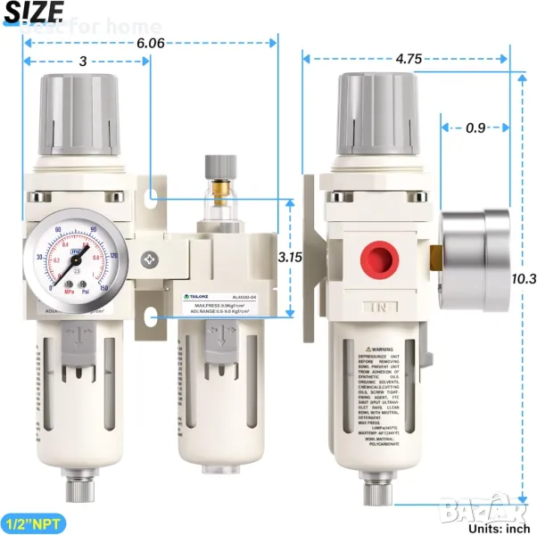 Подготвителна група с регулатор за въздух TAILONZ AW 4000-4/ AL 4000-4