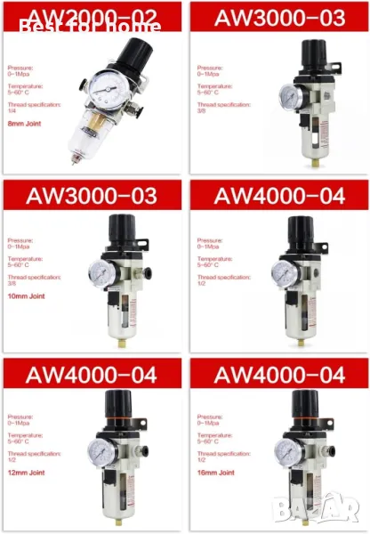 Филтър за регулатор на налягането на въздуха 3 в 1 с чаша за смазване