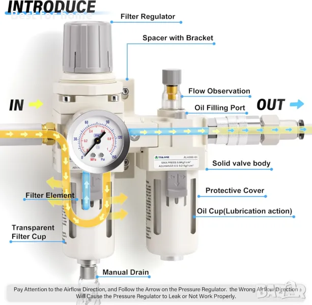 【Характеристики на продукта】 Регулирайте налягането на въздуха, филтрирайте влагата и частиците във въздуха и смазвайте въздуха.