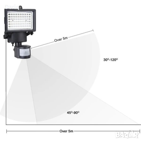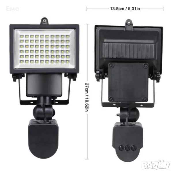 Соларен градински прожектор 60 LED и сензор за движение → Обява 47730085