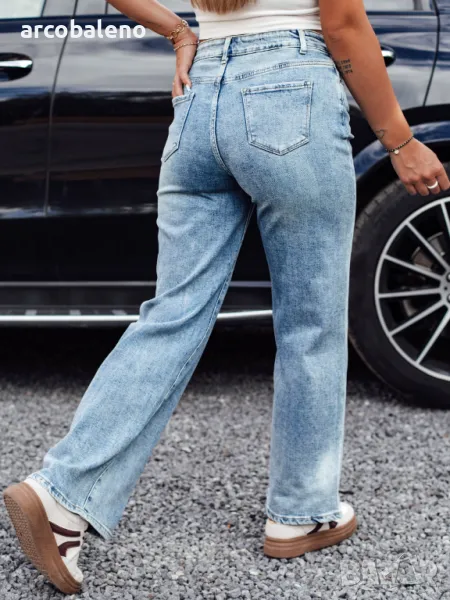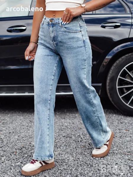 Дамски дънков панталон с висока талия и широки крачоли JEANFLOW