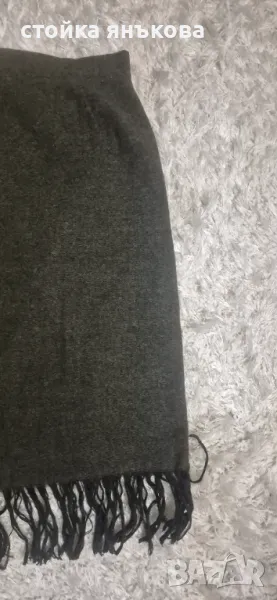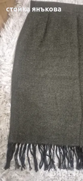 Продавам елегантна масленозелена пола от тънък вълнен плат с ресни.
