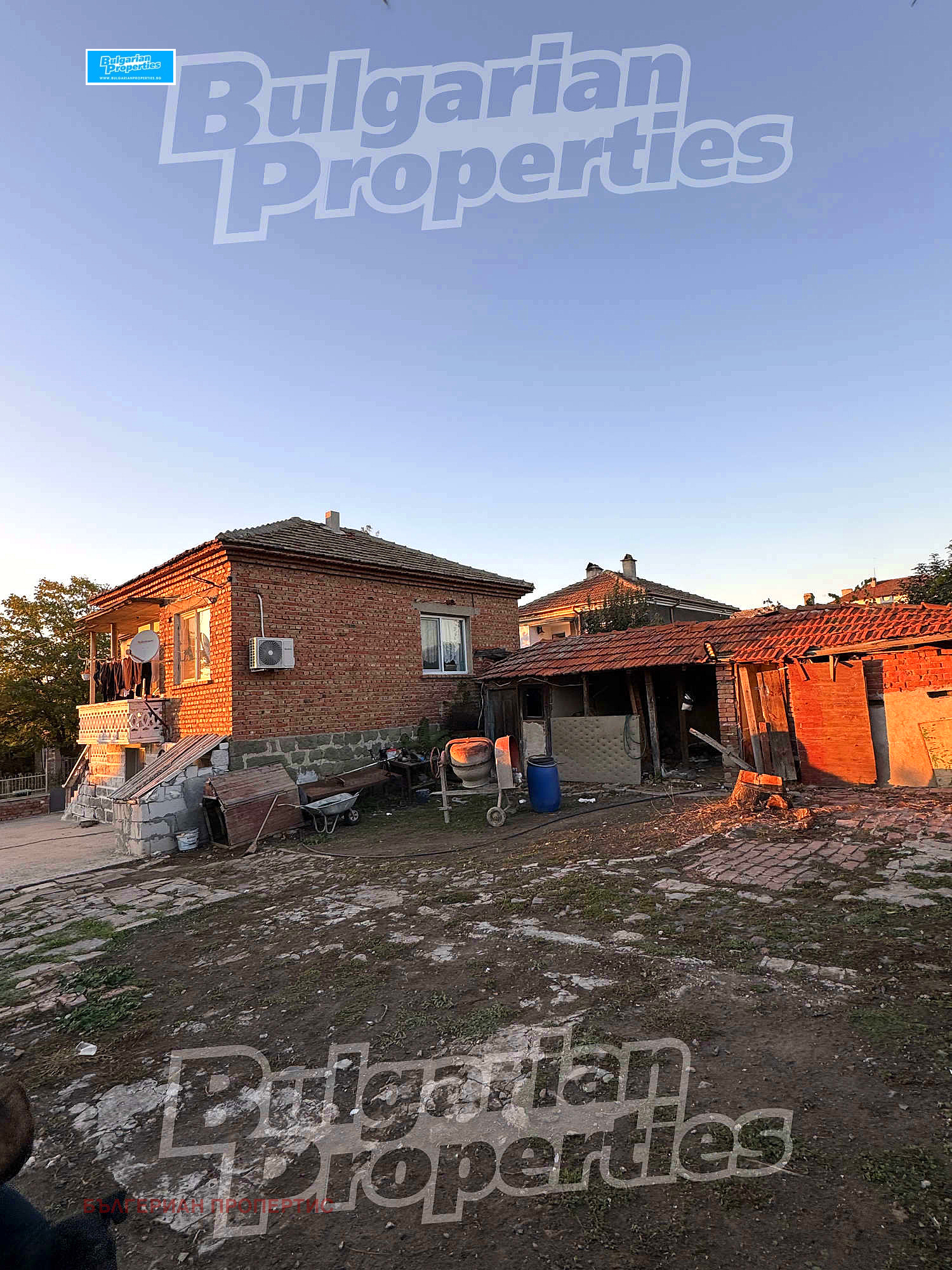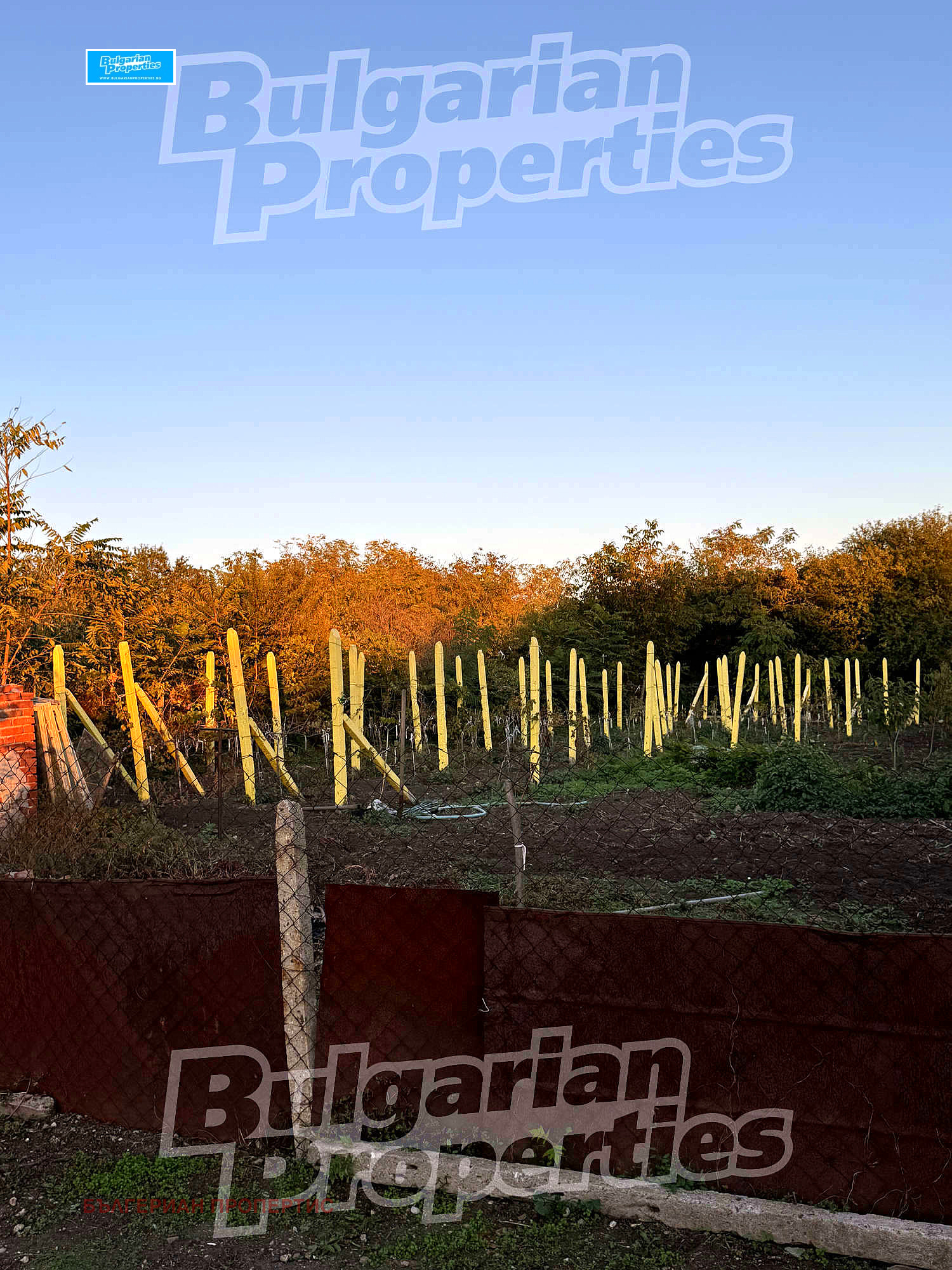 Дворът представлява 1 декар парцел, предлагащ красива зелена градина с плододаващи черешови дръвчета, лози сорт Каберне и прасковени дървета, както и кладенец, осигуряващ естествен водоизточник за градинарство или други нужди.