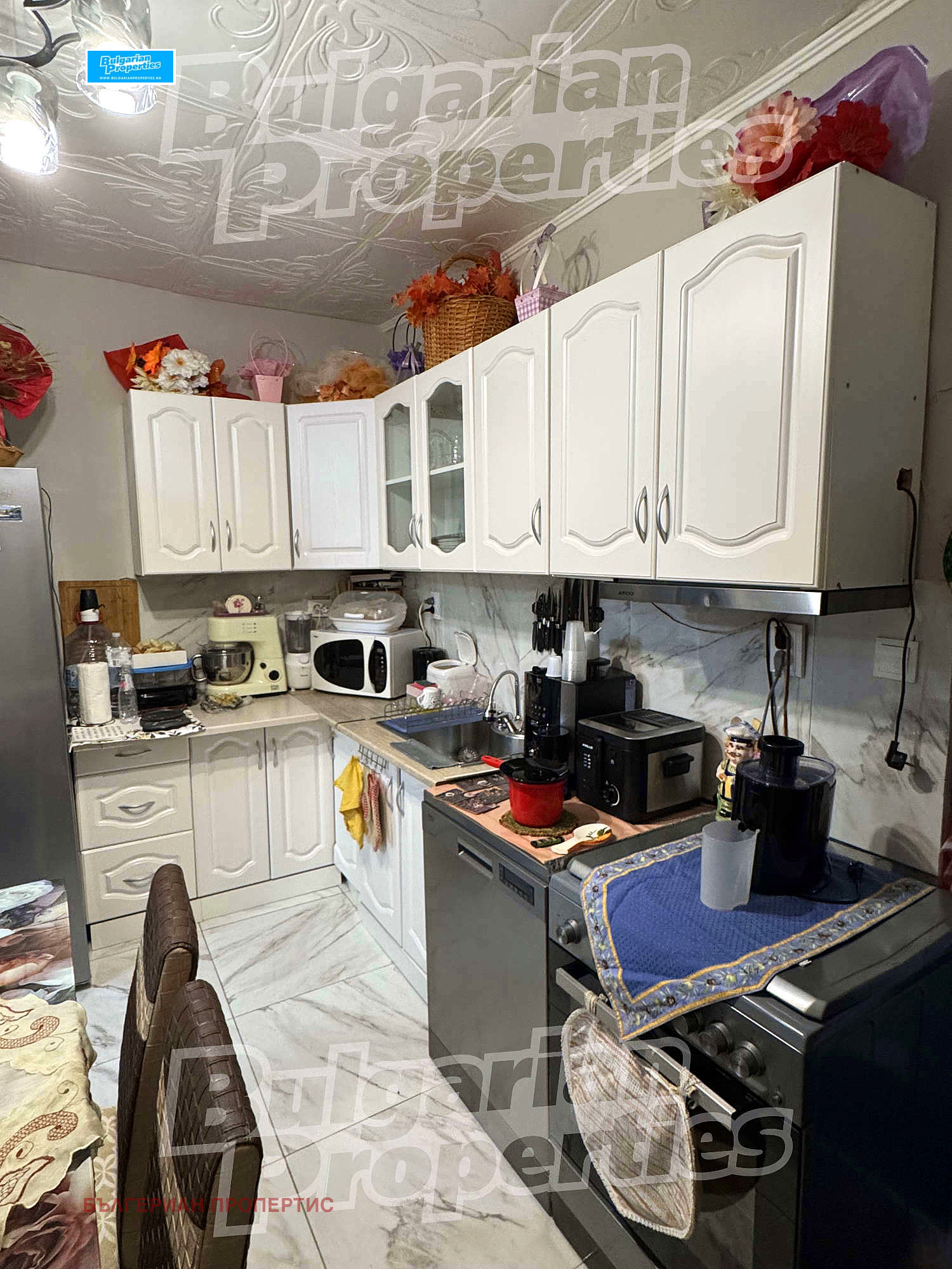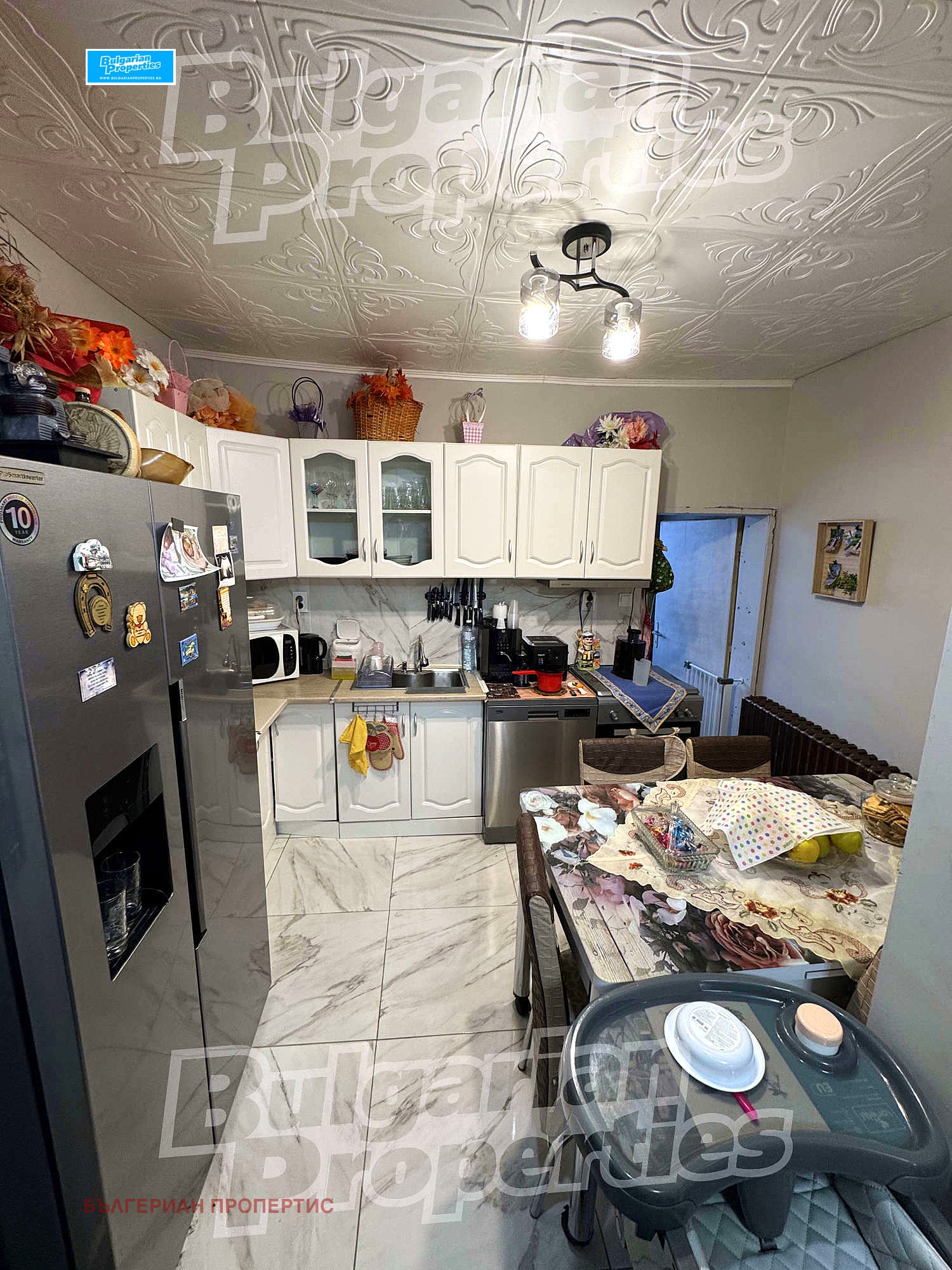 Къщата ви посреща със светъл и просторен хол, разполага с 4 уютни спални, осигуряващи спокойствие и комфорт за обитателите и гостите. Наскоро реновираната модерна кухня е напълно оборудвана с всички удобства.
