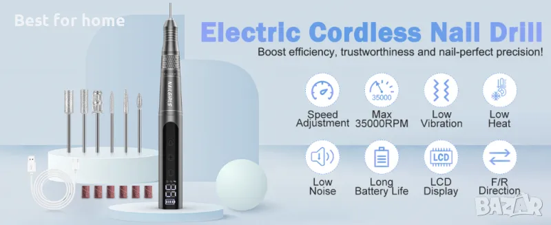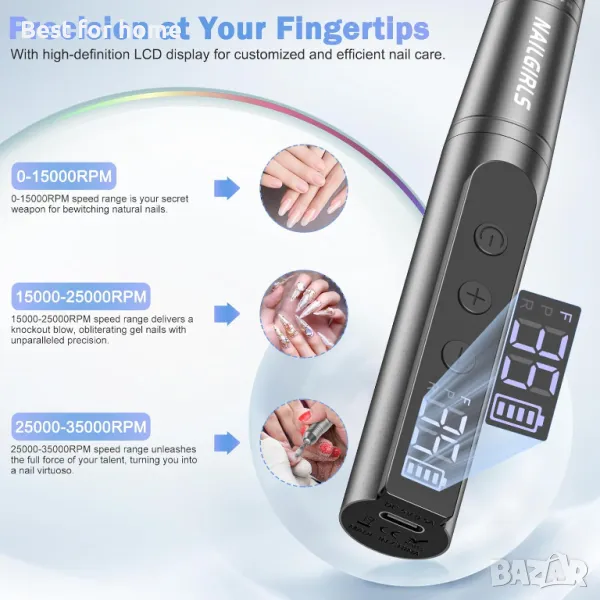 NAILGIRLS Безжична електрическа пила за нокти с аксесоари