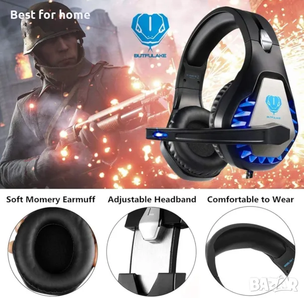 Геймърски слушалки BUTFULAKE GH1 за PS5, 4, Xbox One, PC, PS5, лаптоп