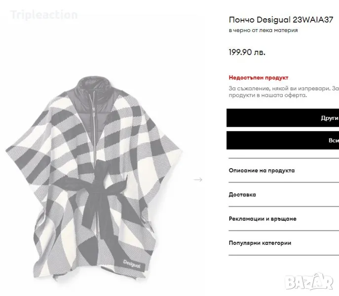 Пончо Desigual, в черно каре, от лека, нежна материя → Обява 47733089