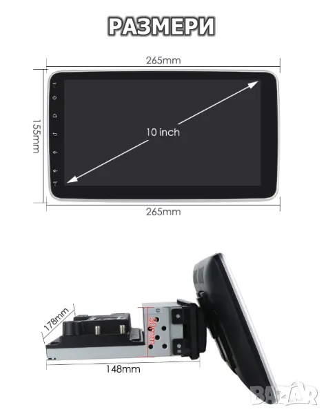 10" 1-DIN мултимедия с Android 12, 8-core, 4/64GB, RDS